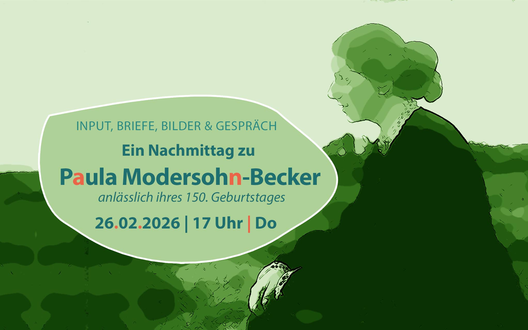 Die Malerin Paula Modersohn-Becker war eine Wegbereiterin der Moderne, eine Vorreiterin des Expressionismus. Ihre Kunst blieb lange unbeachtet von der männlich dominierten Kunstwelt; von den Nationalsozialisten als entartet eingestuft und aus Museen entfernt. Geboren am 8. Februar 1876 in Dresden; verstorben am 20. November 1907 im Künstler:innen-Dorf Worpswede. An diesem Nachmittag ein Erinnern an sie durch Lesung von Auszügen aus ihren zahlreichen Briefe; durch Fotografien, Bilder und gemeinsamen Austausch bei einer Tasse Tee… zum Kennenlernen oder Erfahren von noch unbekannten Lebensmomenten einer außergewöhnlichen Künstlerin.