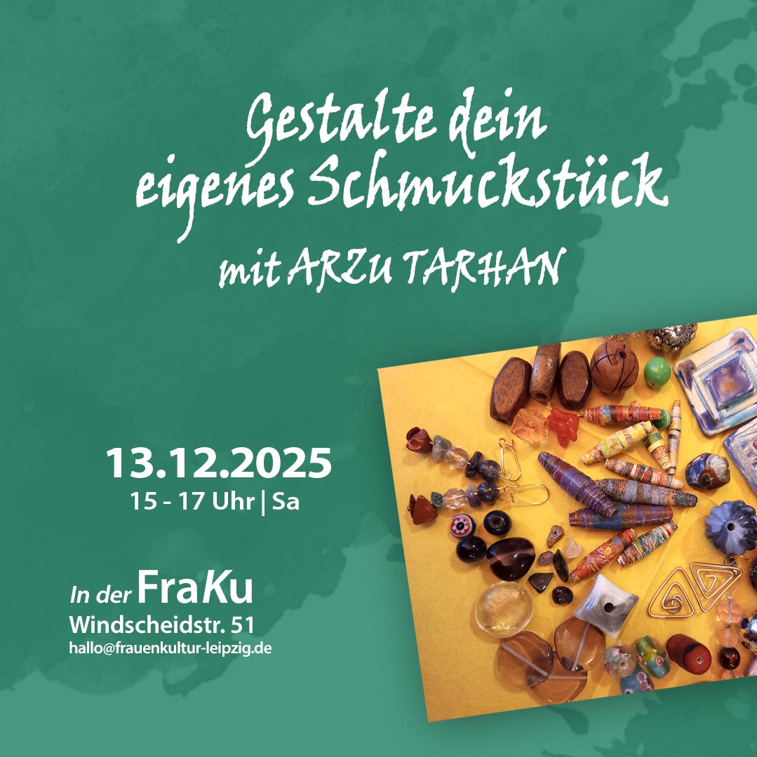 In diesem Workshop lernst Du, mit verschiedenen Perlen und Materialien individuelle Schmuckstücke anzufertigen. Ob Ohrringe, Armbän-der, Kette oder Schlüsselanhänger – du entscheidest, was du gestalten möchtest. Gemeinsam entstehen kreative und persönliche Werke, die sich wunderbar zum Selbstbehalten oder Verschenken eignen. Alle Materialien werden bereitgestellt. Vorkenntnisse sind nicht nötig.