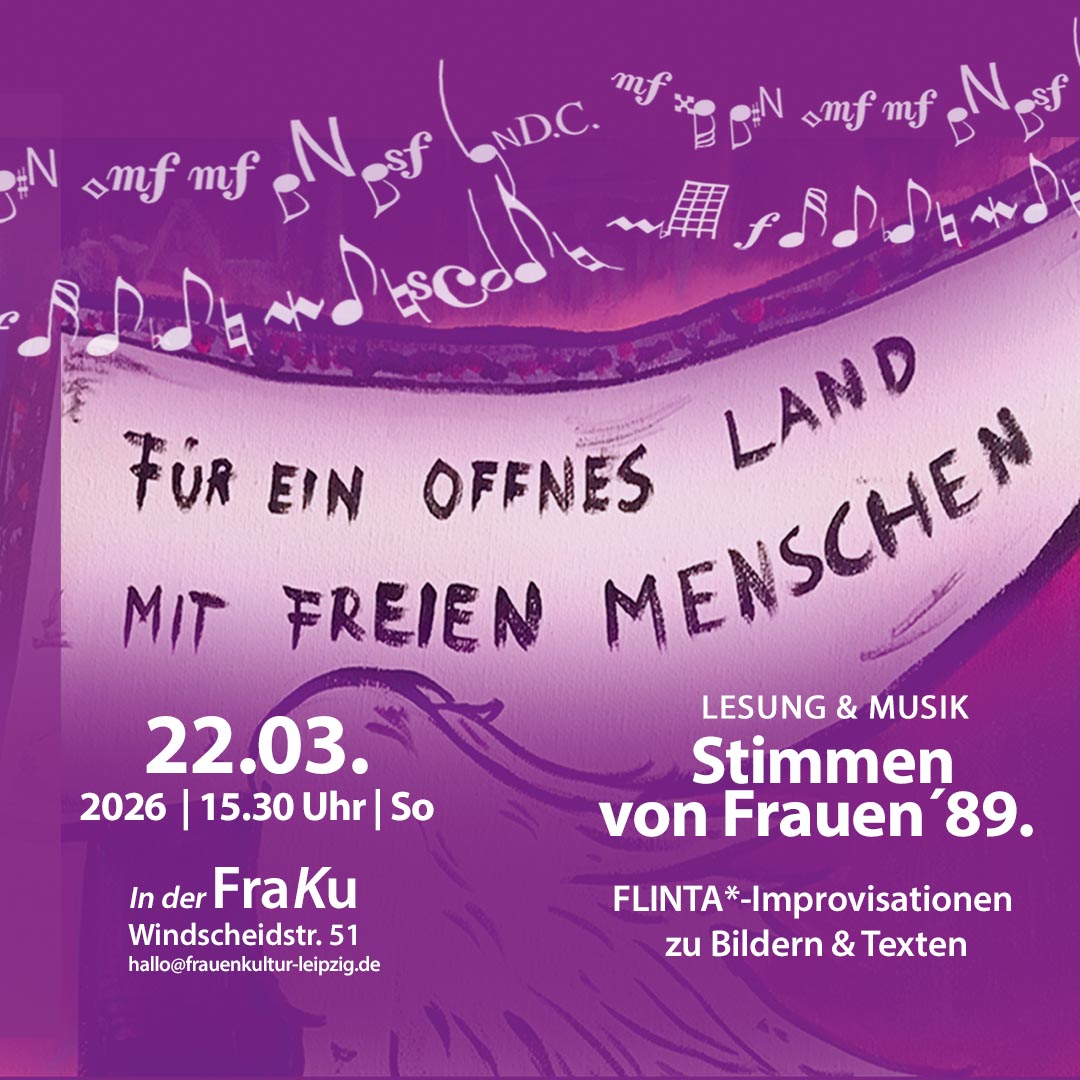 Die Musikerinnen* des FLINTA*-Musik-Netzwerk Leipzig entwickeln ein einmaliges Live-Konzert zu ausgewählten Zitaten politisch engagierter Frauen von 1989 und zu Kunstwerken des Wettbewerbs „Frauen 1989 – Künstlerinnen*2019“.