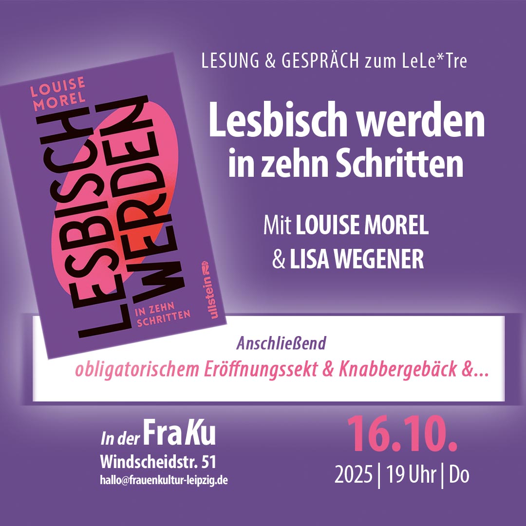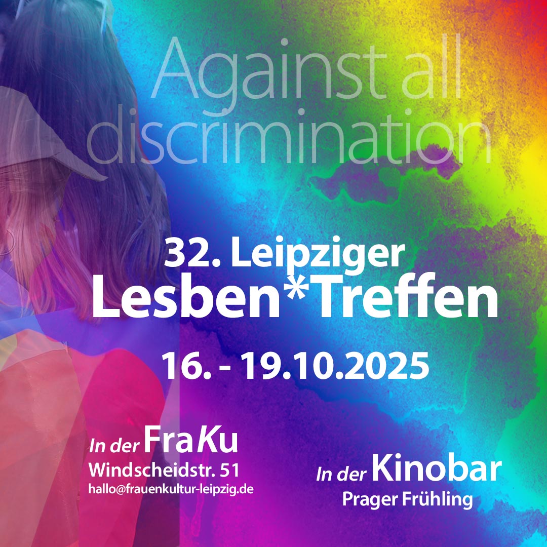 Das „Leipziger Lesben*Treffen“ wird auch in seiner 32. Ausgabe mit viel Leidenschaft, Ernsthaftigkeit & konsequenter Positioniertheit – unterschiedlichsten Perspektiven auf die queer-lesbische Community einen offenen Raum geben. Das ist heute letztendlich für ein geschlechtergerechtes Miteinander-Leben-Wollen unabdingbar. Und wie in den vergangenen Jahren werden aktuelle gesellschaftliche Herausforderungen und Konflikte, die 2025 unser aller Alltags-/Leben mehr als nur tangieren – unumgänglich lesbische Teilhabe in der Gegenwart wie in der Vergangenheit berühren und Einfluss nehmen.