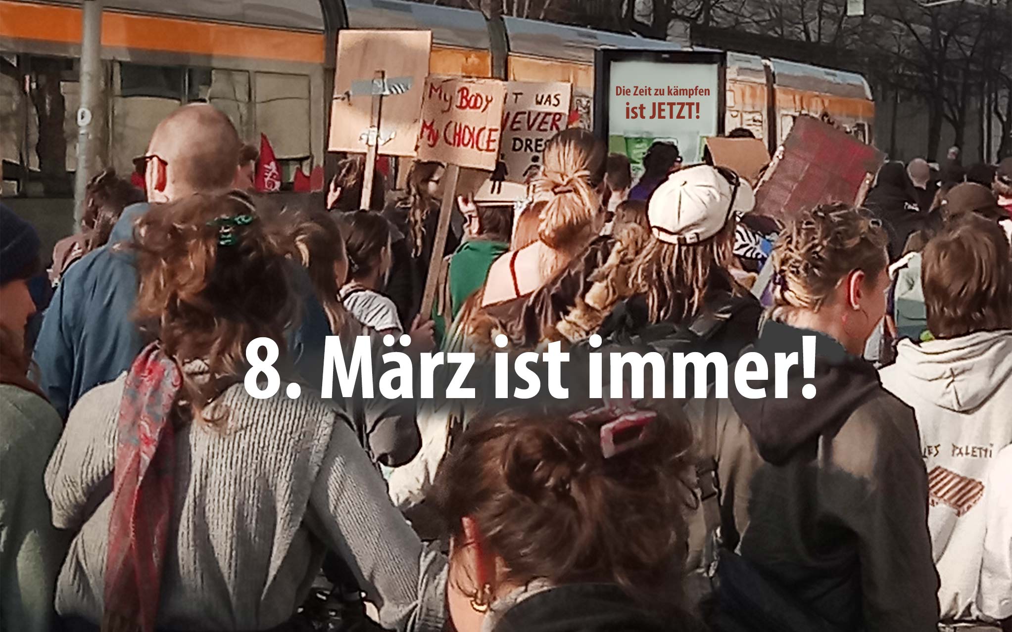 Dies gilt für die gesamte Aktion des Bündnisses “8. März ist immer” am 08.03.2026: für die Demo, die Redebeiträge und die Werbung.