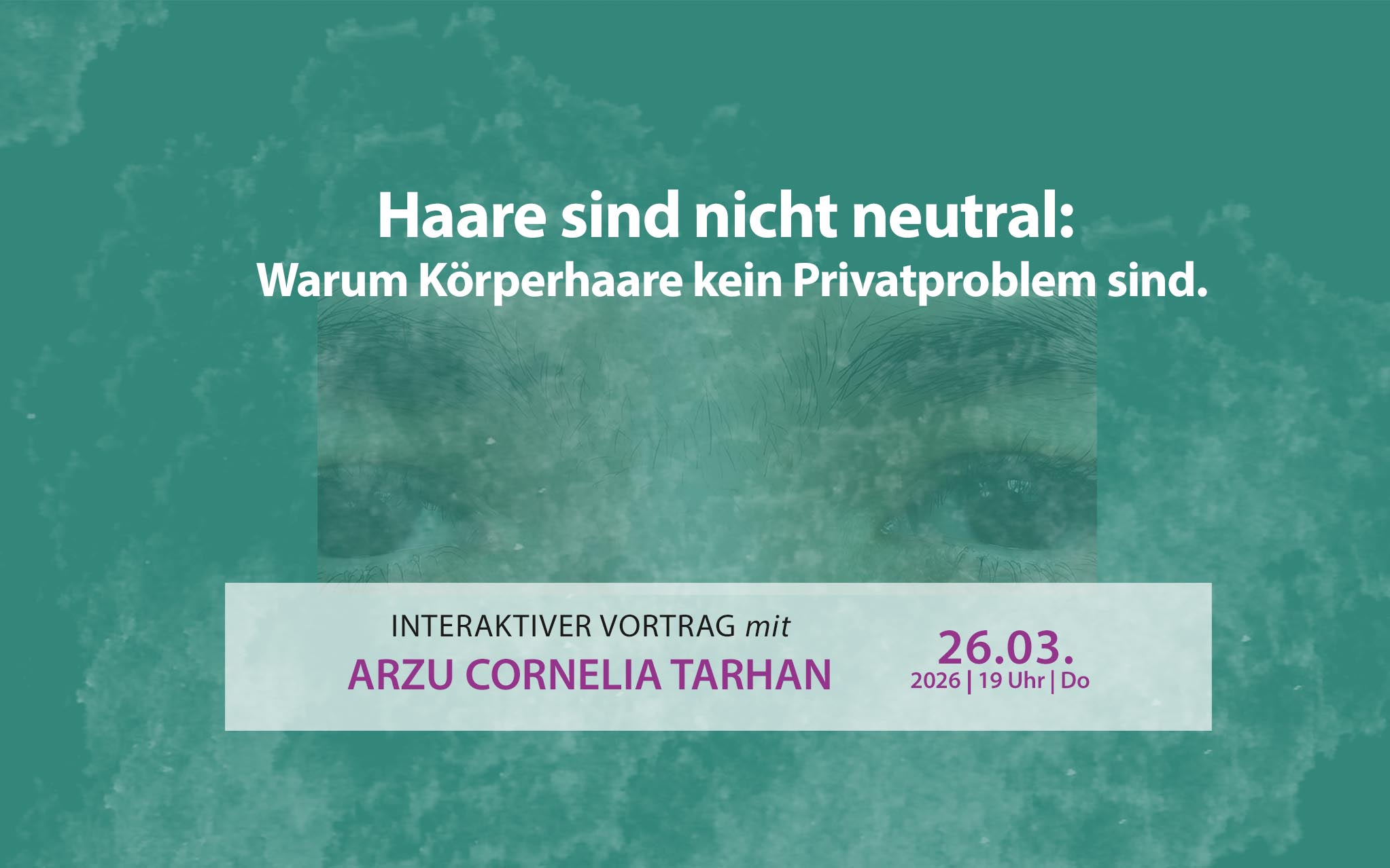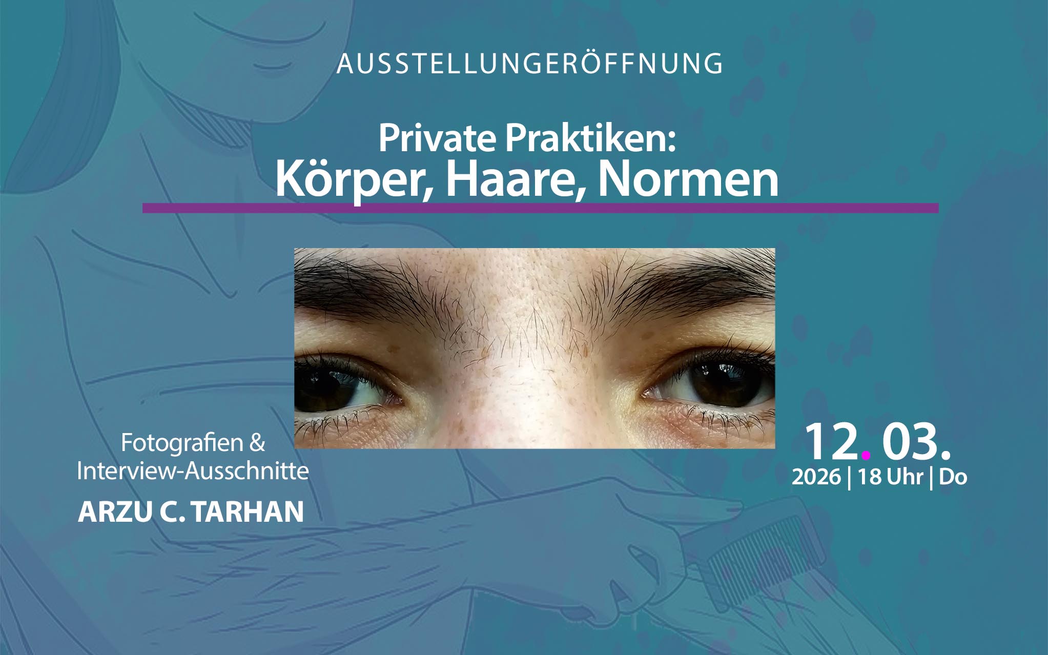 Gezeigt werden Fotografien von Teilnehmerinnen* einer partizipativen Fotobefragung – entstanden im Rahmen der Masterarbeit von ARZU CORNELIA TARHAN zum Thema „Umgang von Frauen* mit (Körper-)Haaren“. Die Teilnehmerinnen* erhielten die Aufgabe, fotografisch darzu-stellen, wie sich ihr Umgang mit (Körper-)Haaren gestaltet. Die entstandenen Bilder waren Grundlage für anschließende Interviews. Gezeigt wird eine Auswahl dieser Fotografien in Verbindung mit entsprechenden Interviewstellen – private Momente, die intime Einblicke in den Umgang mit (Körper-)Haaren geben und dazu einladen, den eigenen Umgang zu hinterfragen und in einen gesellschaftlichen Kontext zu setzen.