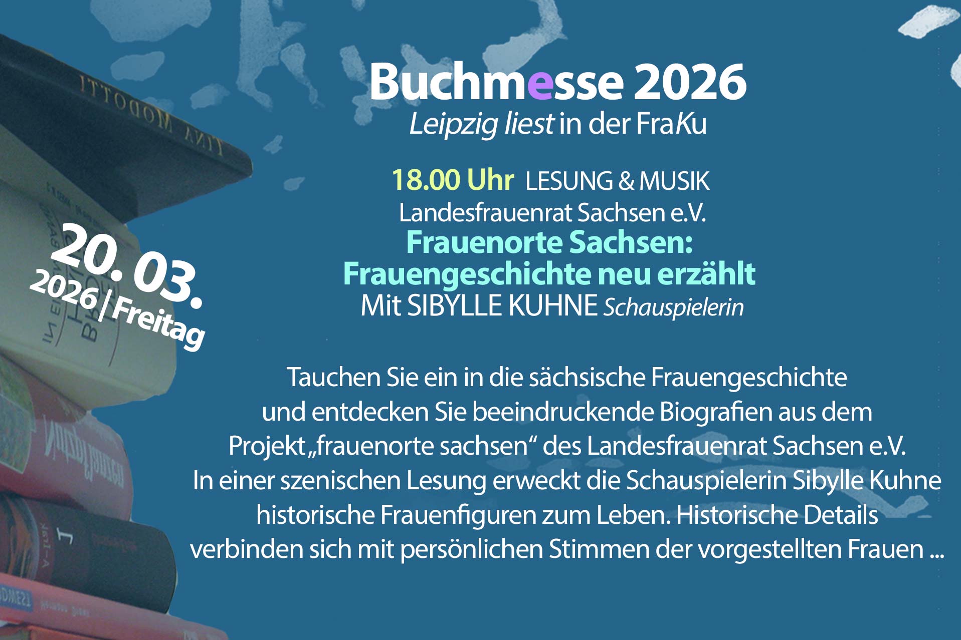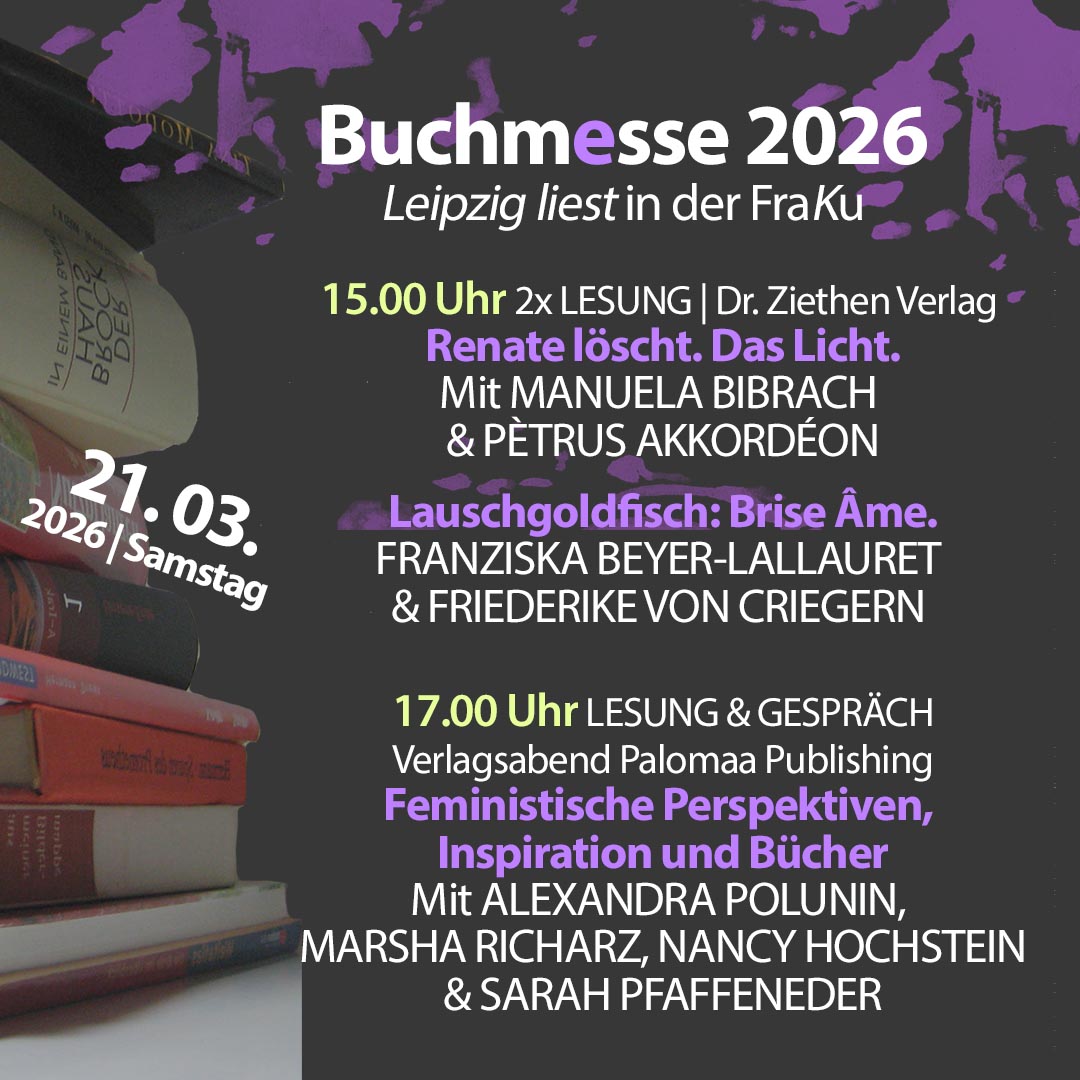 Weshalb eine Lesung bei Frauenkultur Leipzig? Die Texte der Autorin bieten nicht zuletzt eine Auseinandersetzung mit tradierten Frauenrollen und weiblicher Sozialisation, Klischees und Zwängen.