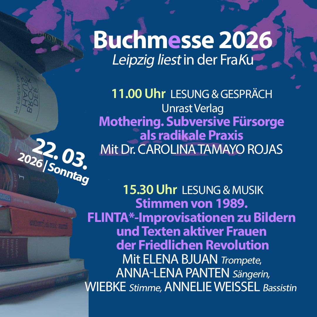 Weitere Informationen zu Aktionen und Demo zum Feministischen Kampftag des „Bündnis 8. März ist immer“ findet ihr zeitnah hier: https://agfrauenprojekte-leipzig.com/aktionen/