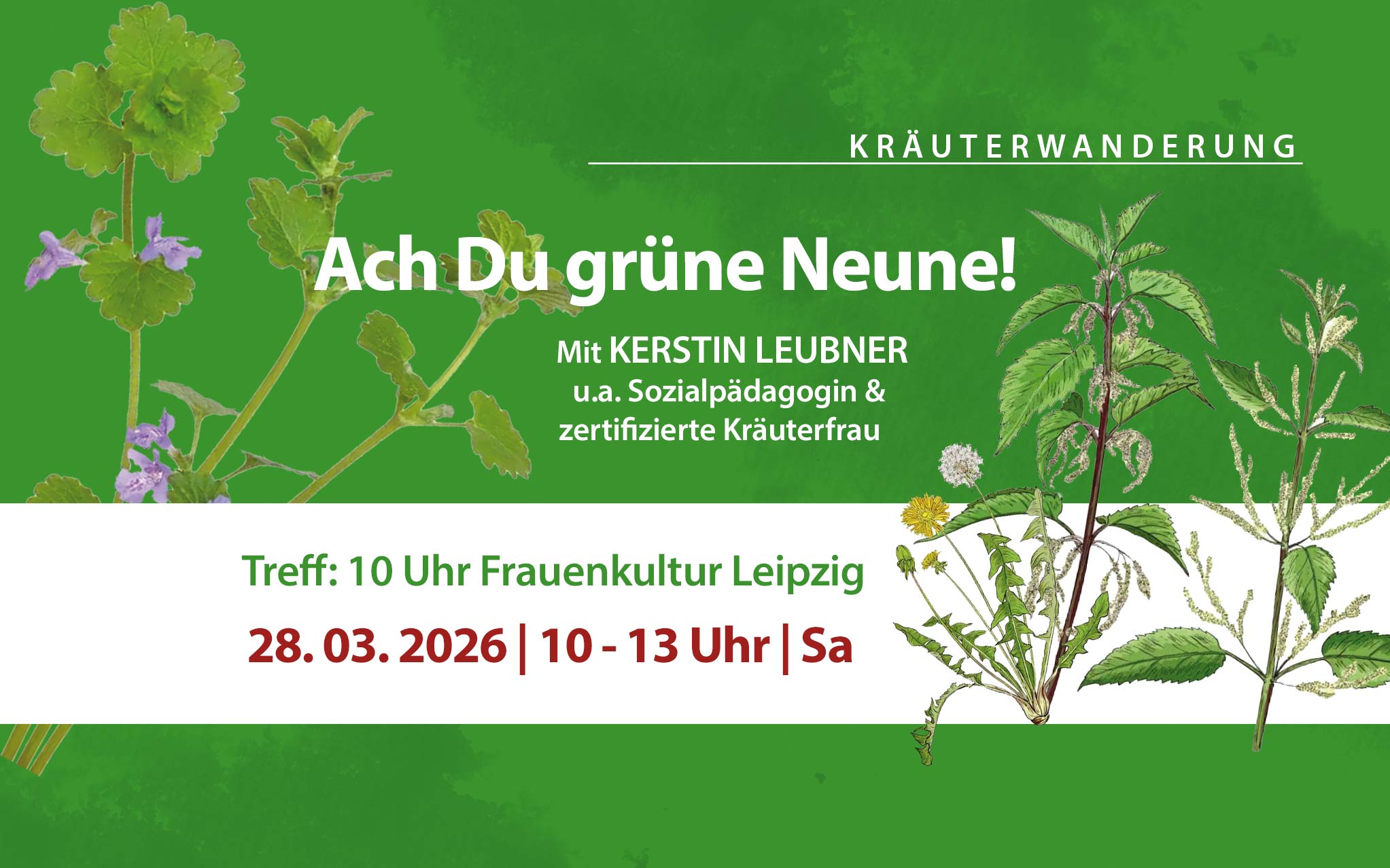 Neun Kräuter gehören traditionell in die Gründonnerstagsuppe. An diesem Vormittag gehen wir nach ihnen auf die Suche und erfahren mehr über ihre Inhaltsstoffe und warum gerade im Frühling die die Kraft der grünen Wilden so gut für uns ist.