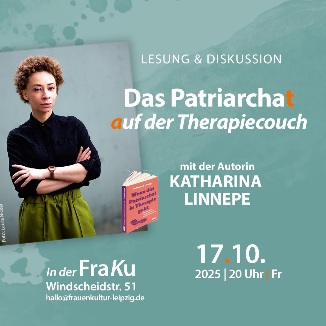 Die Gesellschaftswissenschaftlerin, Moderatorin und Autorin Katharina Linnepe nimmt in ihrer Lesung die tiefsitzenden Störungen unseres Gesellschaftssystems aufs Korn – mit Scharfsinn, Humor und feministischer Haltung. Bekannt durch ihre satirische Instagram-Serie Wenn das Patriarchat in Therapie geht, zeigt sie in ihrem gleichnamigen Buch: Perfektionswahn und Performancedruck, Gewaltstrukturen, Health Gaps und vieles mehr sind keine individuellen Probleme. Sie sind allesamt Symptome eines kranken Systems.