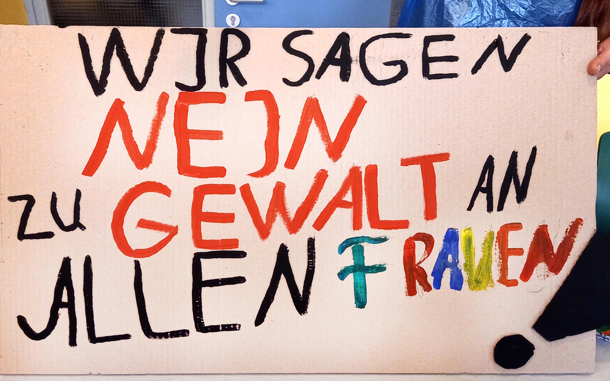 Bei dem Treffen machen wir Plakate zum Thema Gewalt gegen Frauen.
